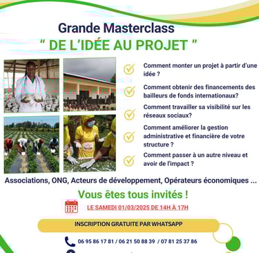 En partenariat avec l'ambassade de Côte d'Ivoire, la Farci a organisé une materclass le samedi 1er mars 2025 portant sur le thème : "De l'idée au projet". Ce premier grand évènement de la FARCI eut lieu dans les locaux de l'ambassade ivoirienne en France et permis d'accueillir une cinquantaine de personnes. ONG, associations acteurs économiques, tous étaient présents.